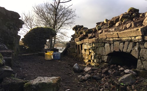 Work was carried out to reverse vandalism and neglect in and around the tower. Thick vegetation, embedded trees and fallen rubble were all removed from the monument.