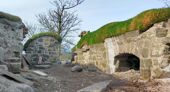 The tower was built with massive, 3 metre-thick walls and four wide-mouthed gun holes. This suggests it was for defence, not for use as a residence. There’s only a few examples of this in Scotland.