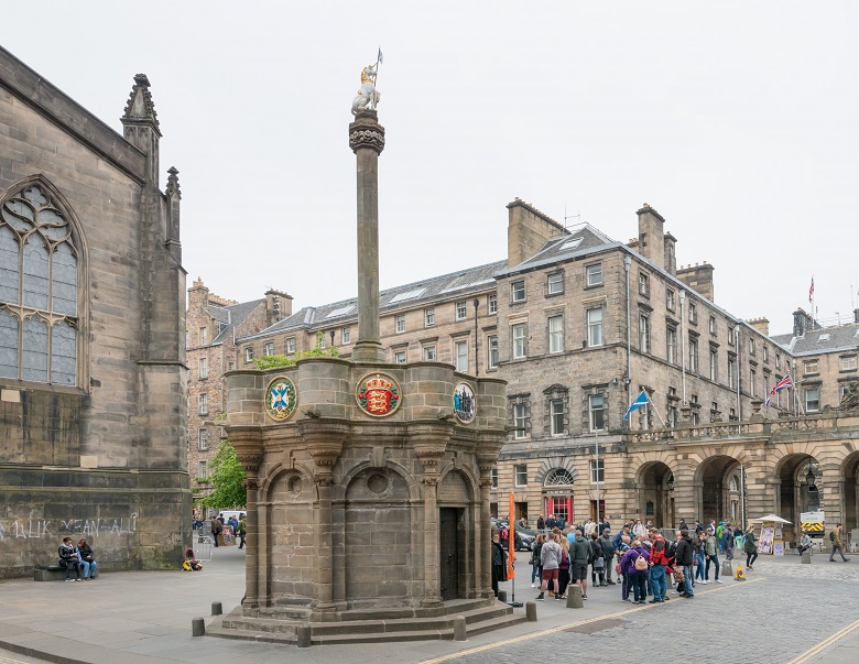 The Mercat Cross on the High Street was a well-known haunt for caddies. Gathering at the central point in the city was a good way to attract customers.