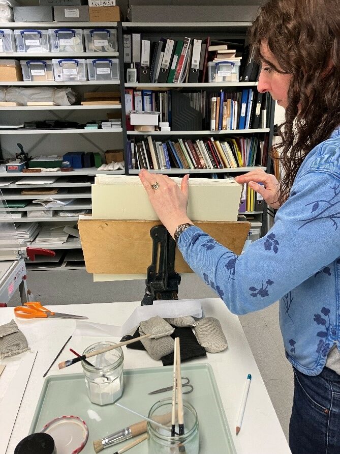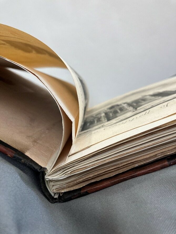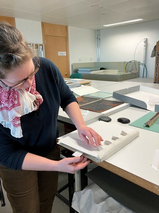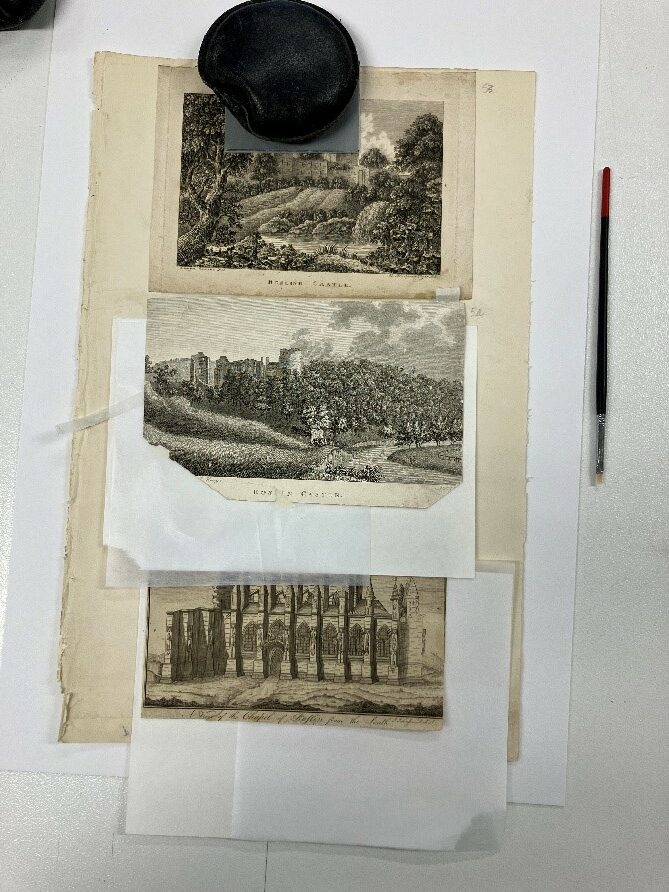 As a paper conservator for Historic Environment Scotland (HES), my expertise lies in the conservation of drawings, plans and photographs. I do have some book conservation experience, however, I am not a formally trained book conservator. Because of the unique nature and importance of the Rosslyn volume, we asked an accredited book conservator for help.