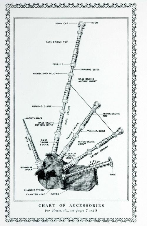 The bagpipe is a type of reed instrument that can use either single or double reeds. The Great Highland Bagpipe, that most people associate with Scotland, consists of a blowpipe, an air bag, a chanter, and several drone pipes that provide a continuous harmonic background.
